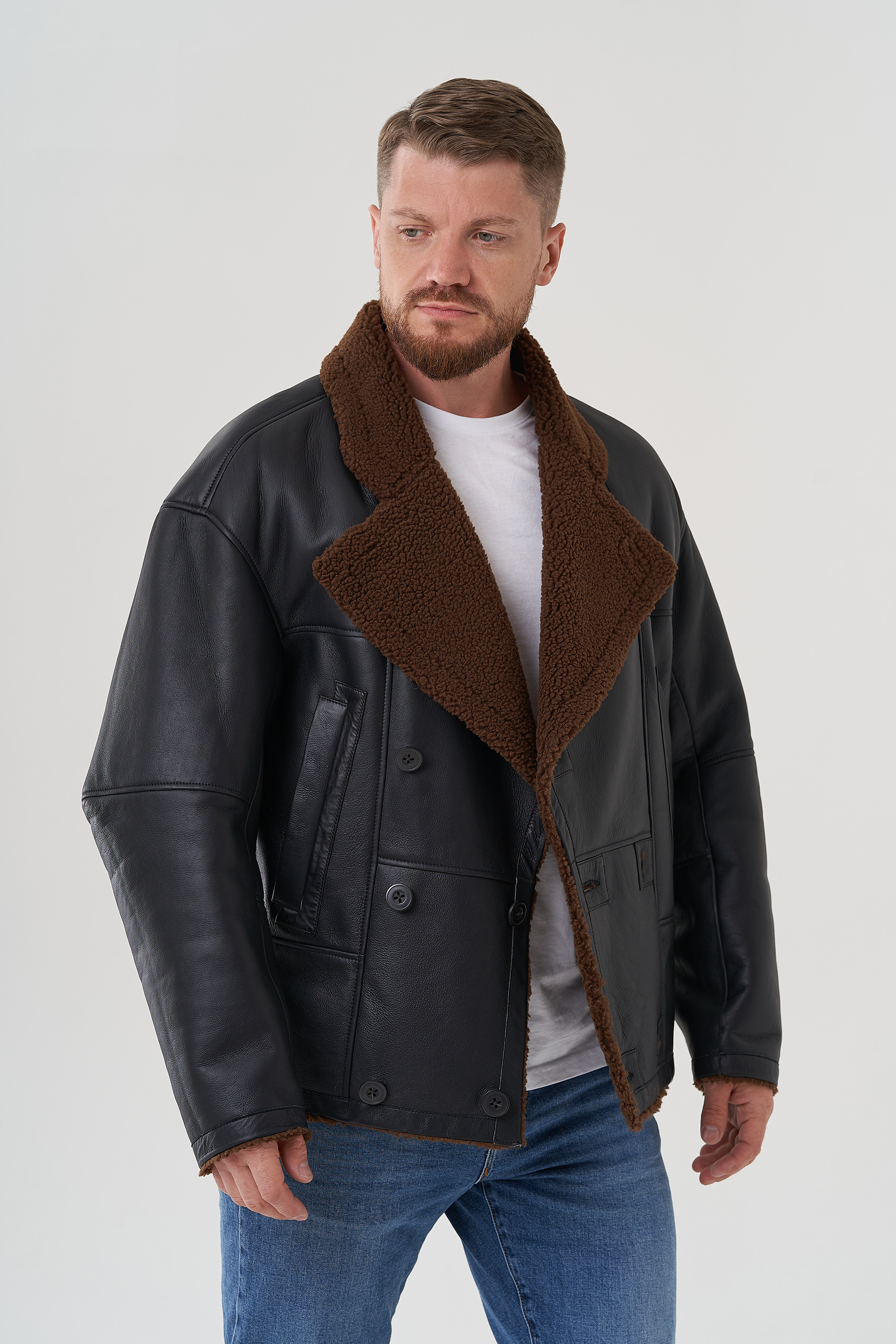 Тип ворота - английский воротник , отделка овчина мерино, цвет - коричневый