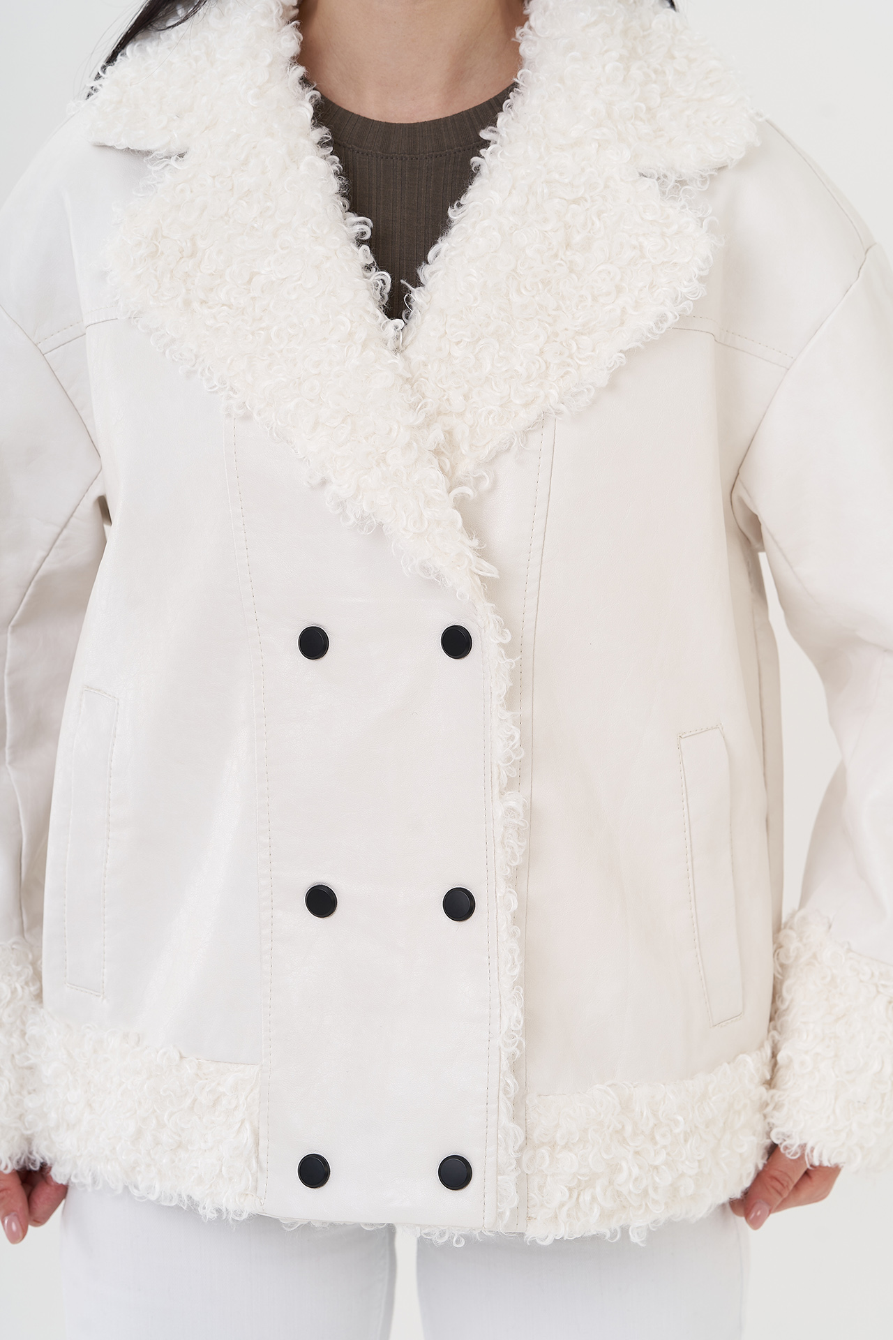 Крой воротника - английский воротник, отделка эко мех