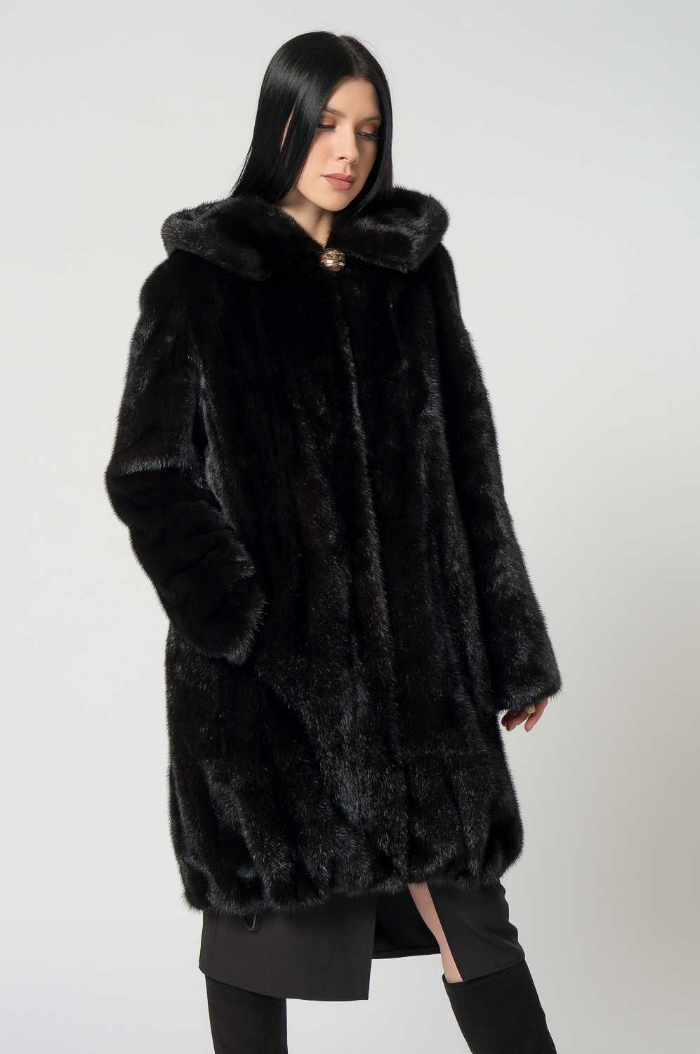 Шуба из норки с капюшоном, кулиска