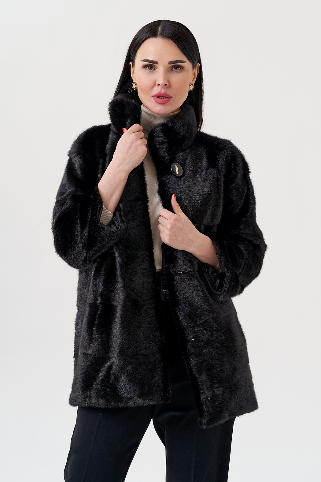 Шуба-трансформер из меха норки. Черный цвет меха практичный и универсальный, подойдет к любой одежде. Длина изделия 95-100 см, но с помощью потайных молний низ изделия можно укоротить. Застегивается на крючки и пуговицу. Воротник стойка защитит от ветра. Пластины меха в поперечном раскладе. Подклад из полиэстера, что делает изделие прочным и термостойким.